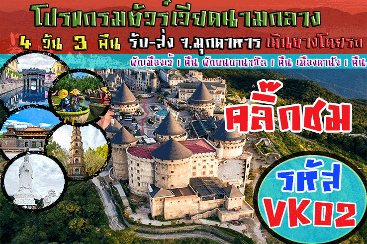 โปรแกรมทัวร์เวียดนามกลาง 4 วัน 3 คืน รับ-ส่ง จ.มุกดาหาร เดินทางโดยรถ ทัวร์เวียดนาม ทัวร์เวียดนามกลาง 2568 - 2569 (VK02) พักบานาฮิว